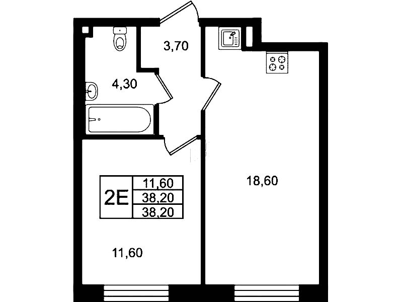 Однокомнатная квартира на 3-ем этаже 38,2 кв.м