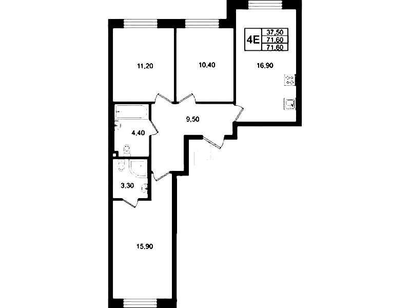 Трёхкомнатная квартира на 3-ем этаже 71,6 кв.м