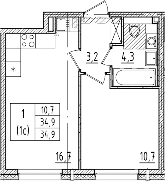 • Площадь34,9 м2