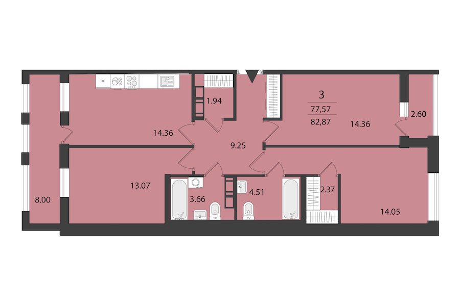 - Площадь82,87 м2