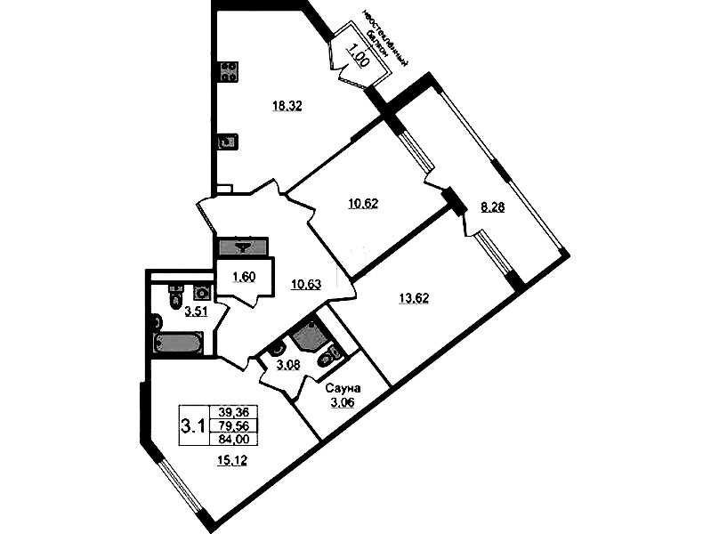 Трёхкомнатная квартира на 2-ом этаже 82,11 кв.м