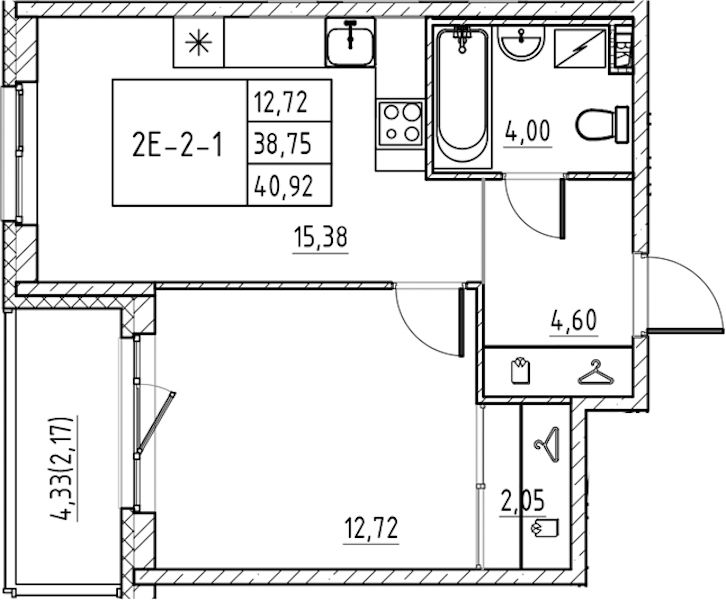 • Площадь40,92 м2