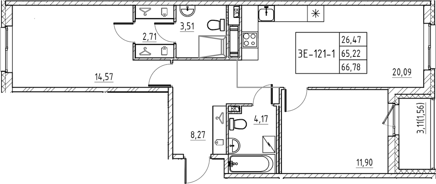 • Площадь66,78 м2