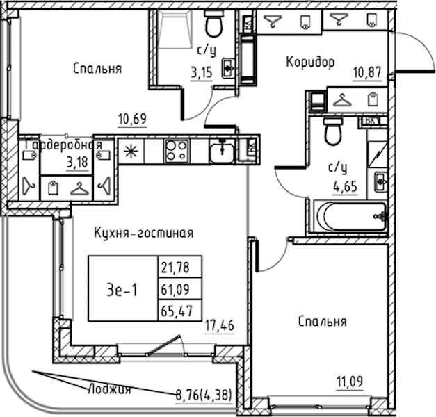 • Площадь65,47 м2
