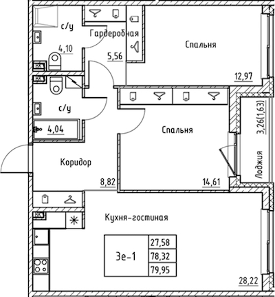 - Площадь79,95 м2