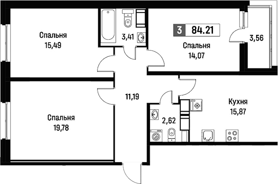 • Площадь84,21 м2