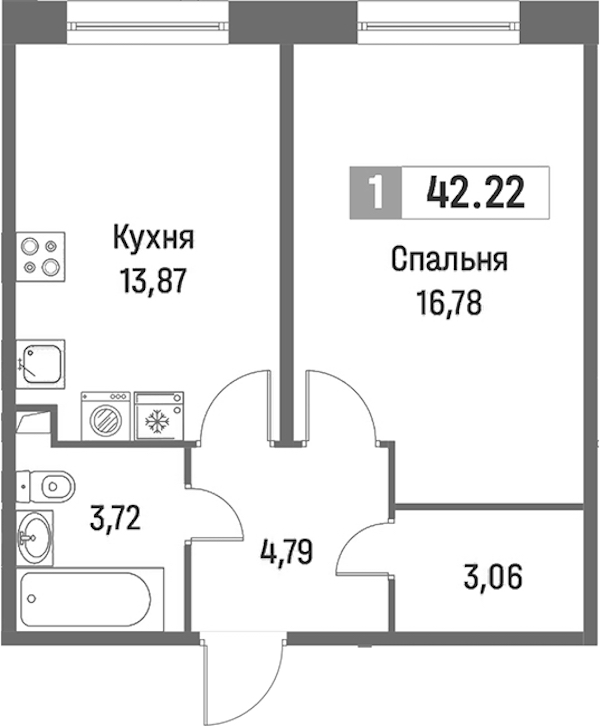 - Площадь42,92 м2