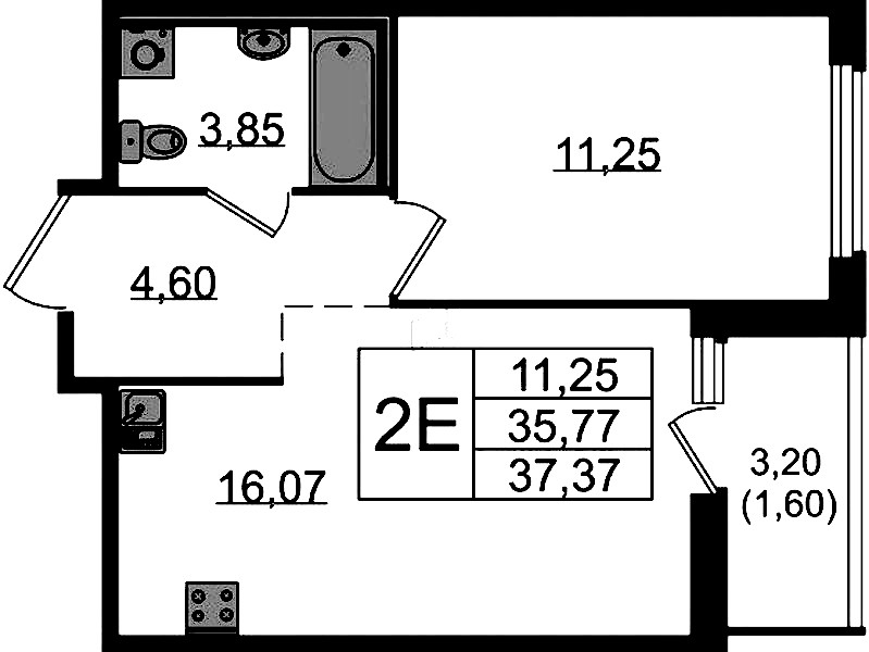 - Площадь37,37 м2