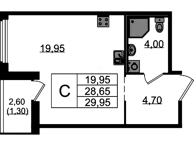 - Площадь29,95 м2