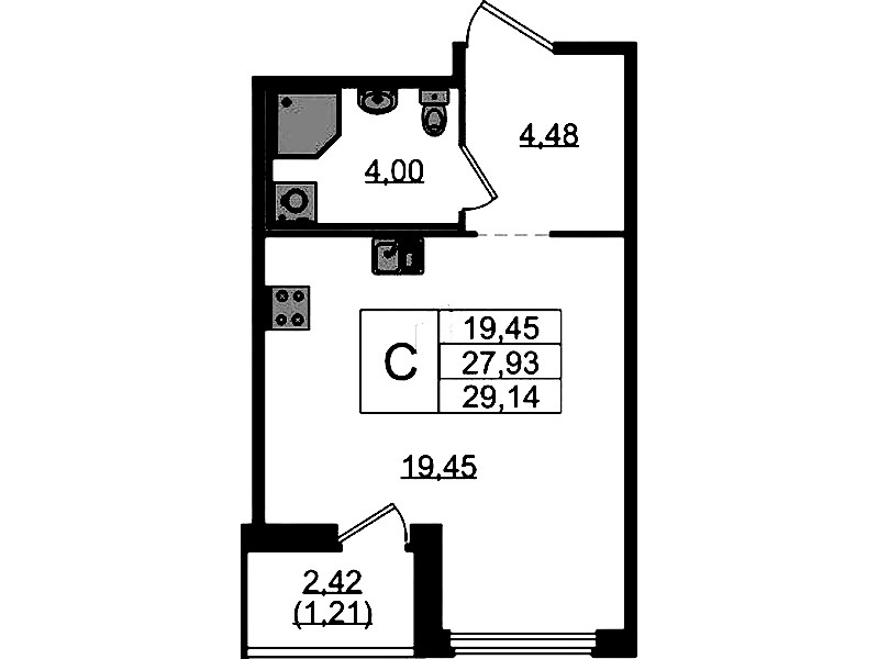 Квартира-студия на 14-ом этаже 29,14 кв.м