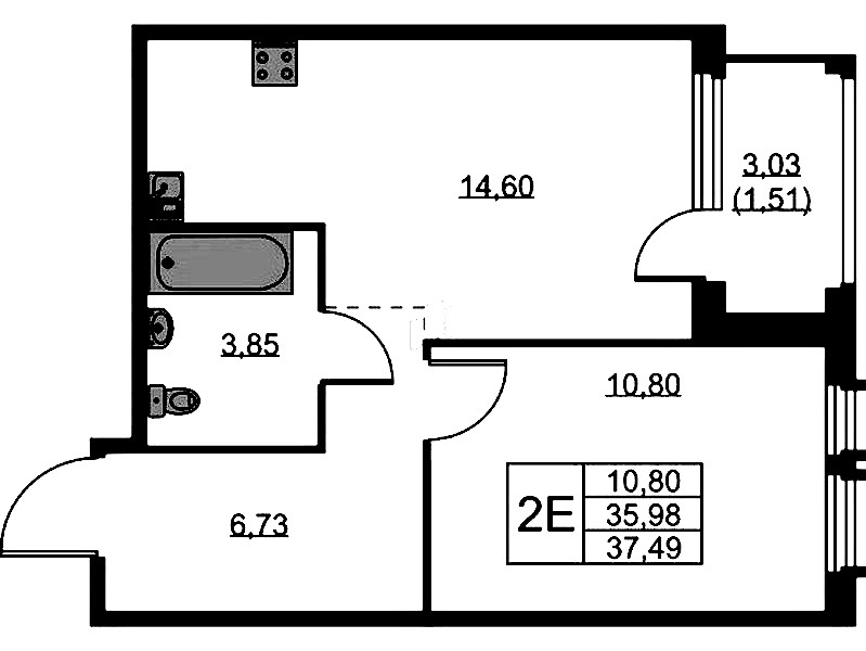 Однокомнатная квартира на 11-ом этаже 37,49 кв.м