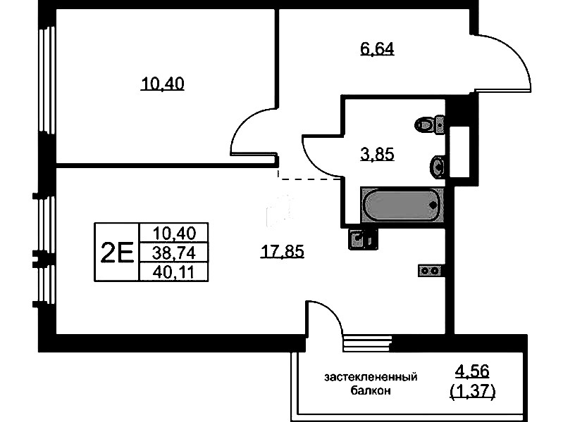 Однокомнатная квартира на 15-ом этаже 40,11 кв.м