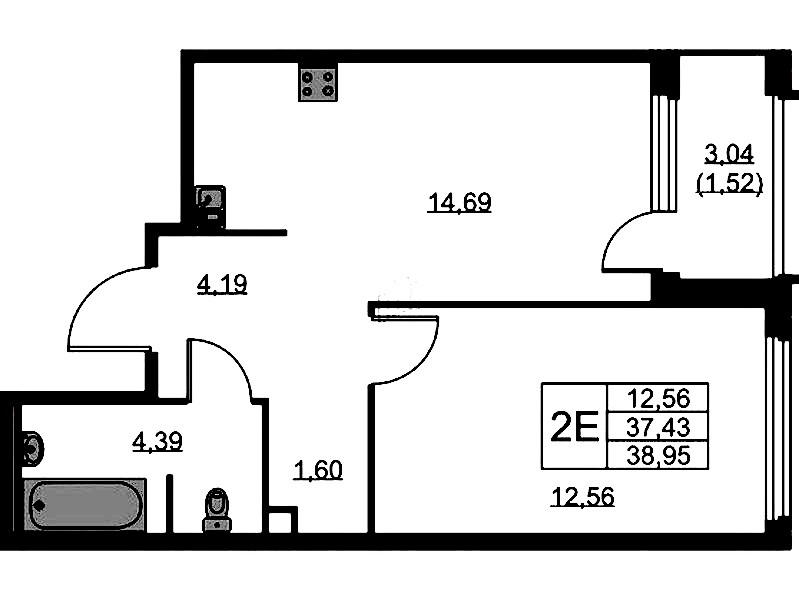 Однокомнатная квартира на 13-ом этаже 38,95 кв.м