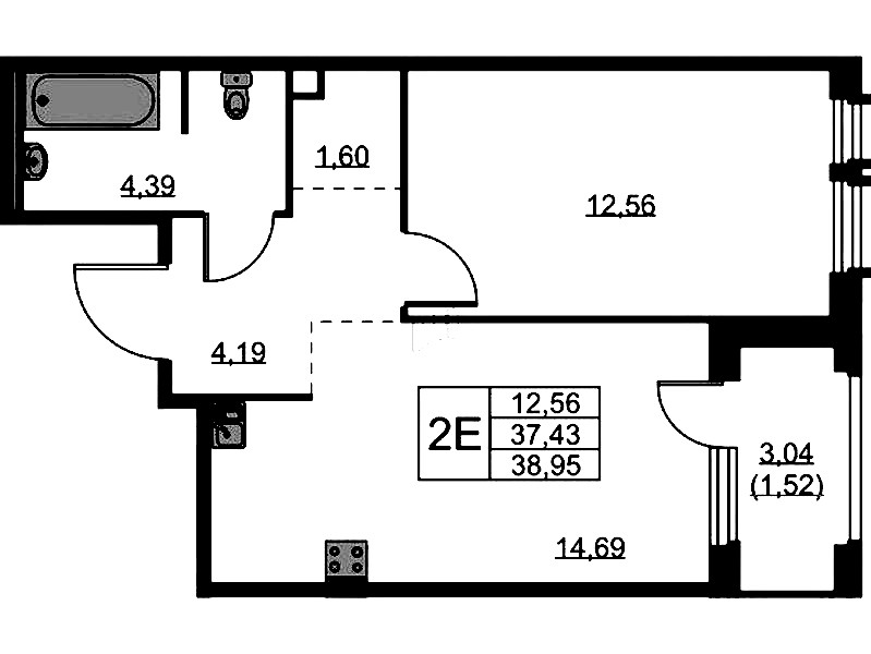 • Площадь38,95 м2