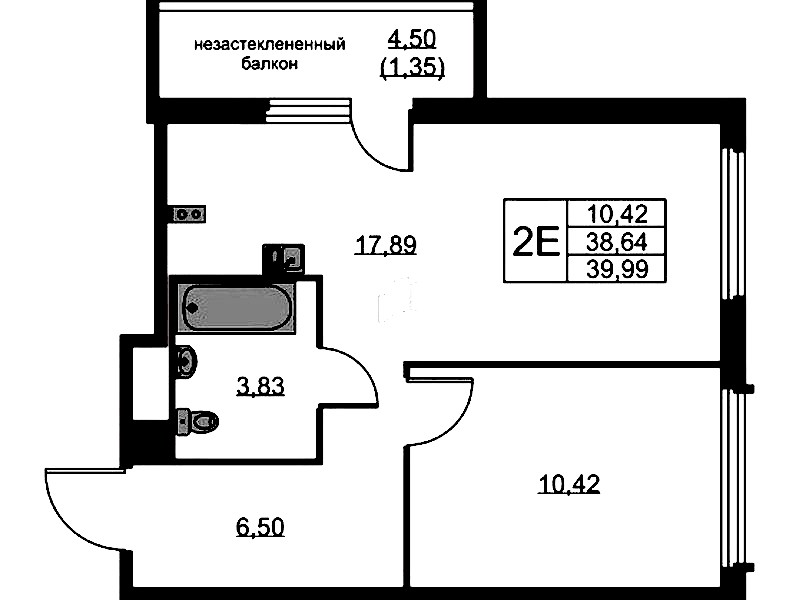 Однокомнатная квартира на 12-ом этаже 39,99 кв.м