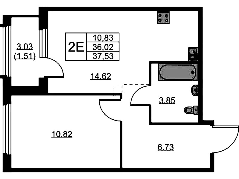 Однокомнатная квартира на 9-ом этаже 37,53 кв.м