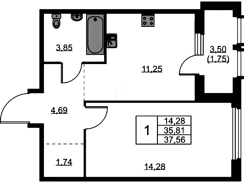• Площадь37,56 м2