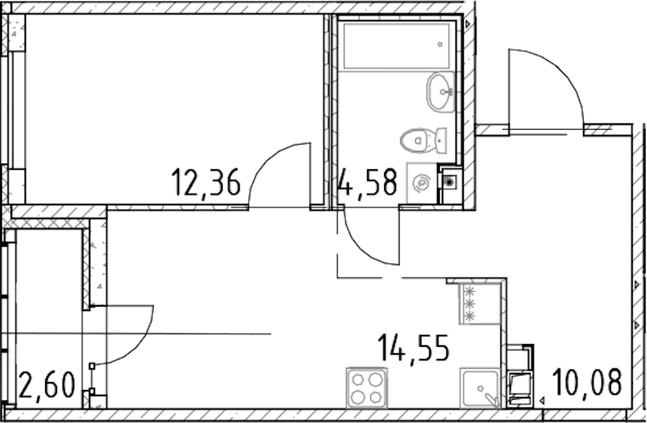 Однокомнатная квартира на 17-ом этаже 41,57 кв.м
