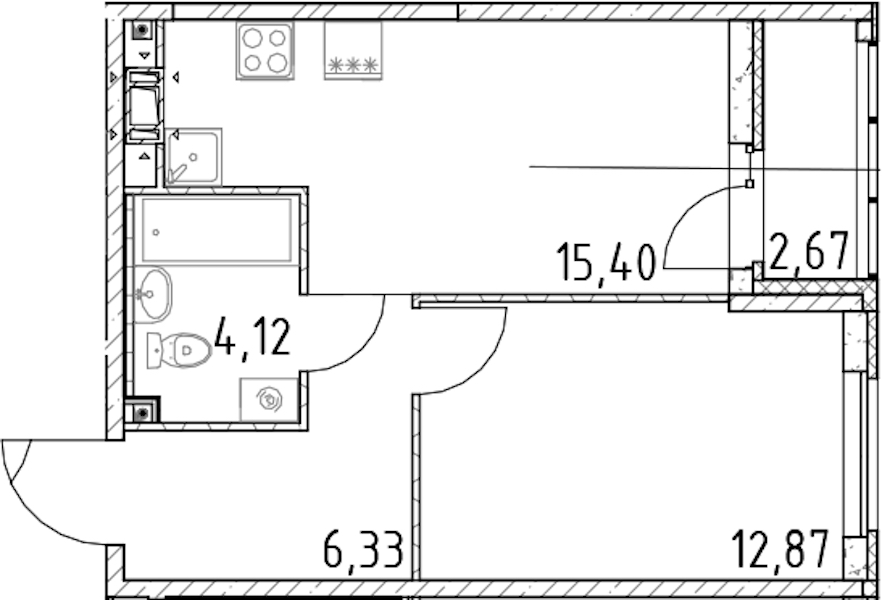• Площадь кухни15,4 м2