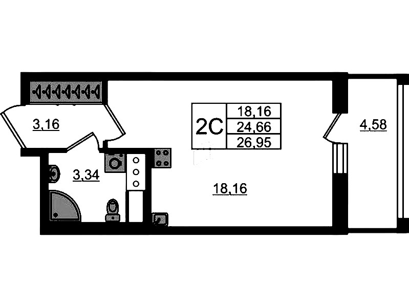 - Площадь24,66 м2