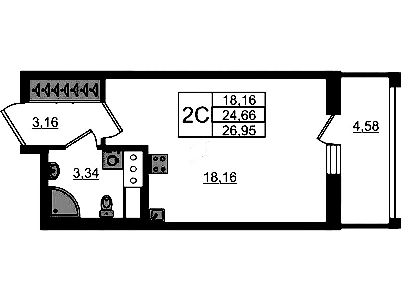 Квартира-студия на 4-ом этаже 24,66 кв.м