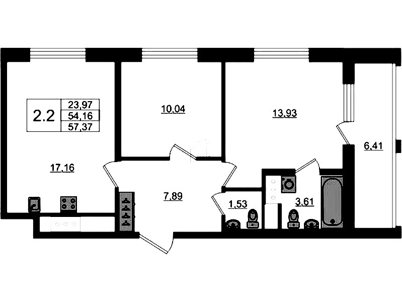 • Площадь54,16 м2