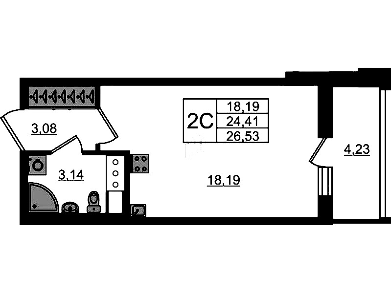 - Площадь24,41 м2