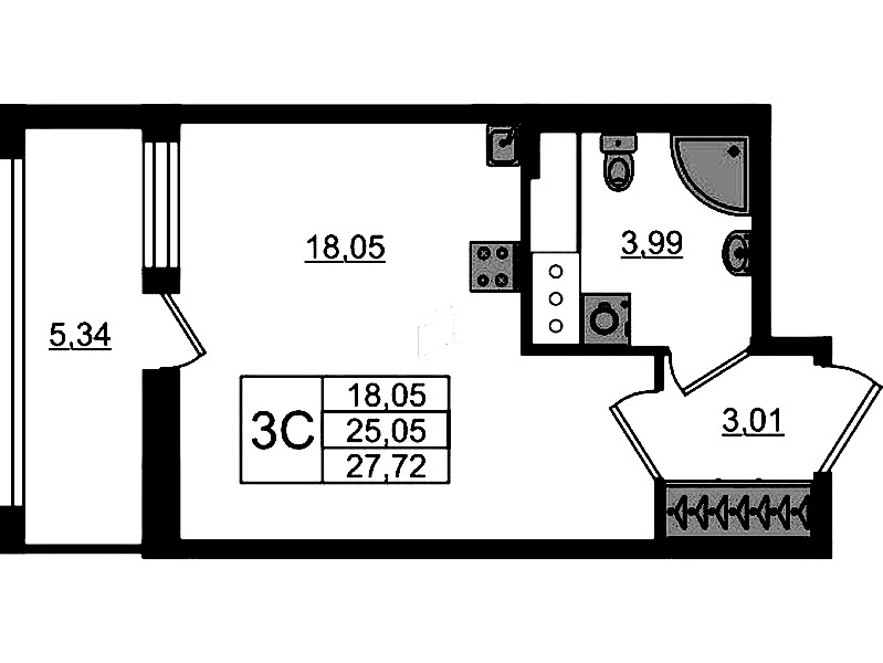 • Площадь25,05 м2