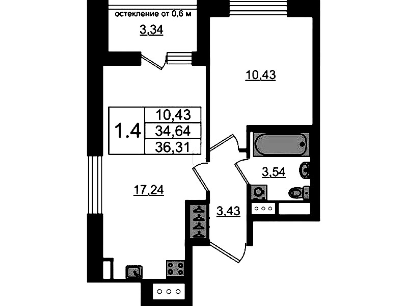 - Площадь34,64 м2
