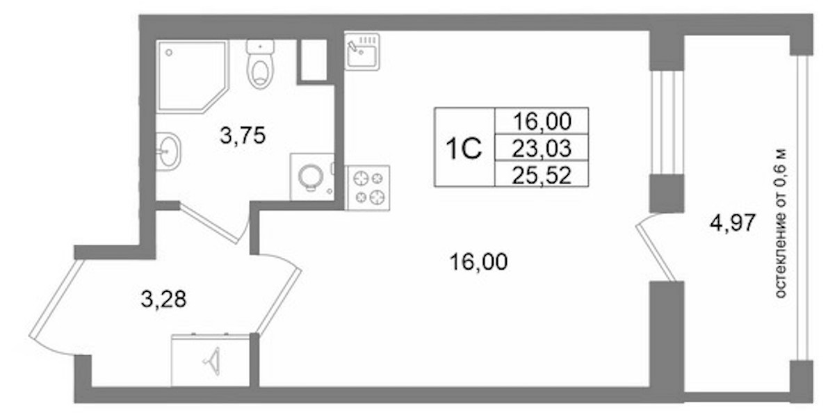 Квартира-студия на 2-ом этаже 23,03 кв.м