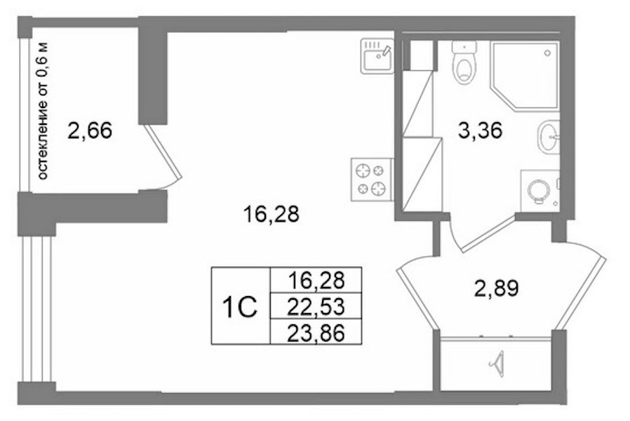 Квартира-студия на 23-ем этаже 22,53 кв.м