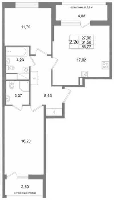 - Площадь61,58 м2