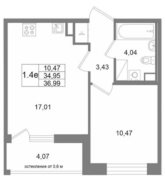 - Площадь34,95 м2