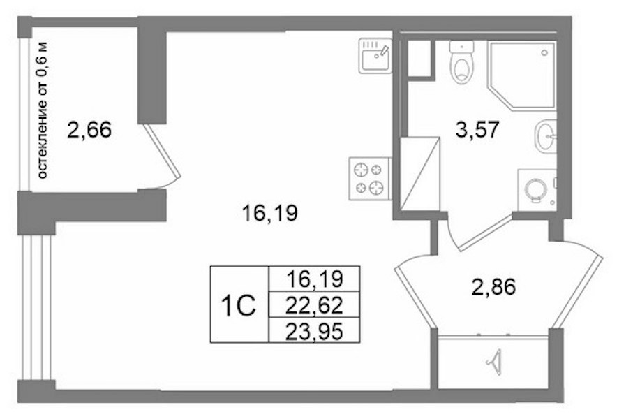- Площадь22,62 м2