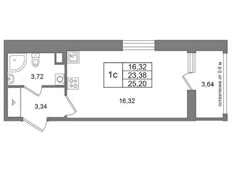 Квартира-студия на 14-ом этаже 23,38 кв.м