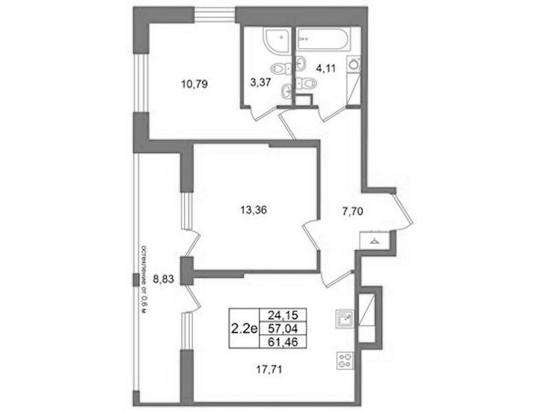 Двухкомнатная квартира на 18-ом этаже 57,04 кв.м