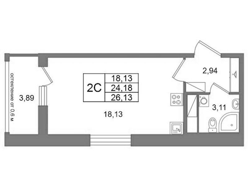 Квартира-студия на 22-ом этаже 24,18 кв.м