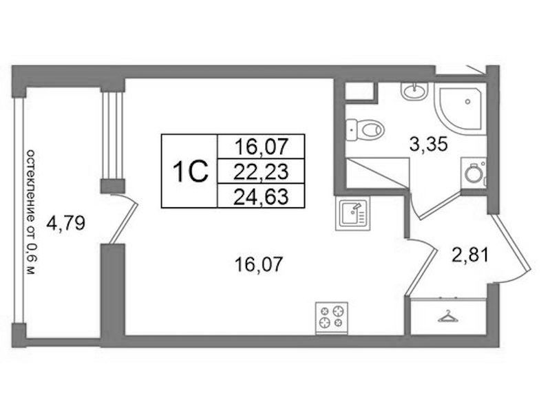 Квартира-студия на 22-ом этаже 22,23 кв.м