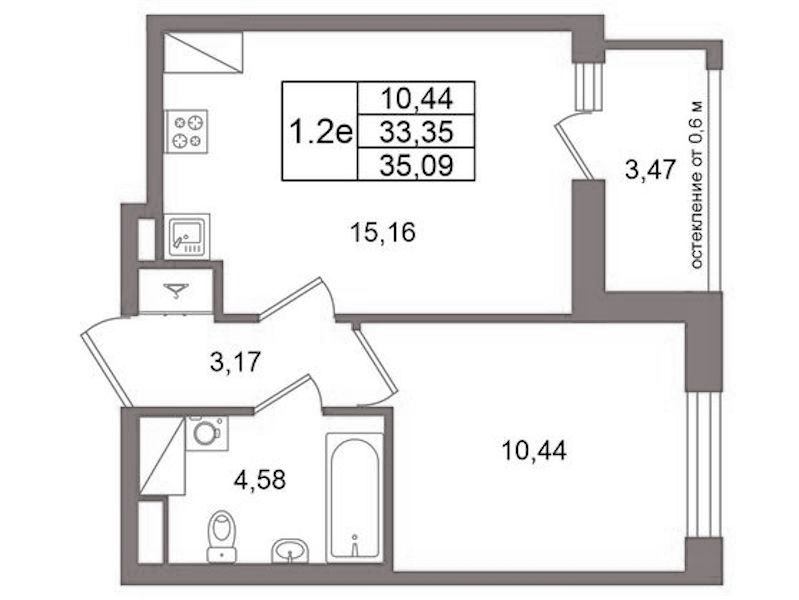 - Площадь33,35 м2