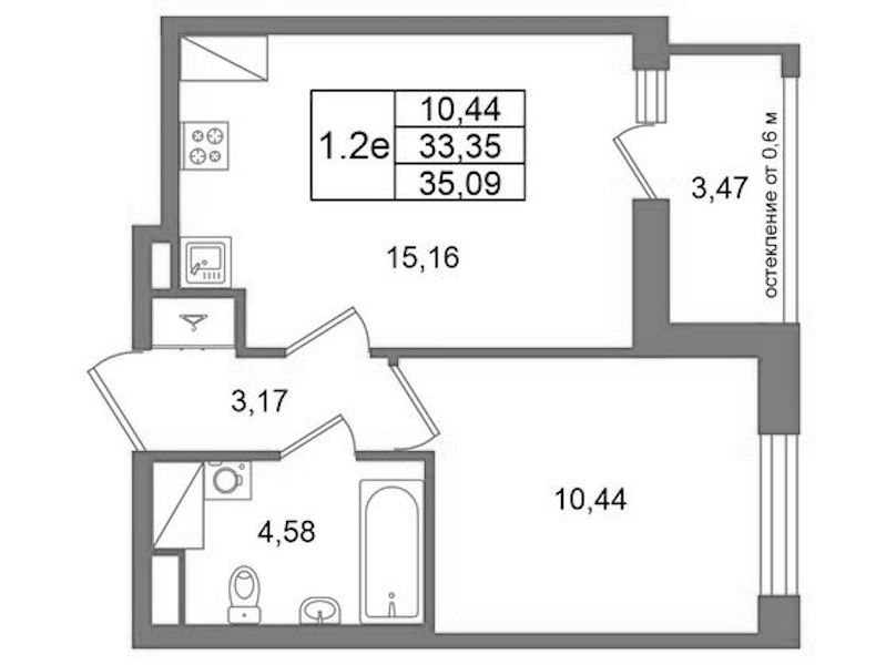 - Площадь33,35 м2