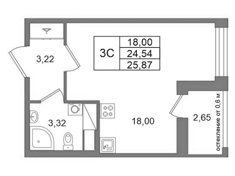 Квартира-студия на 7-ом этаже 24,54 кв.м