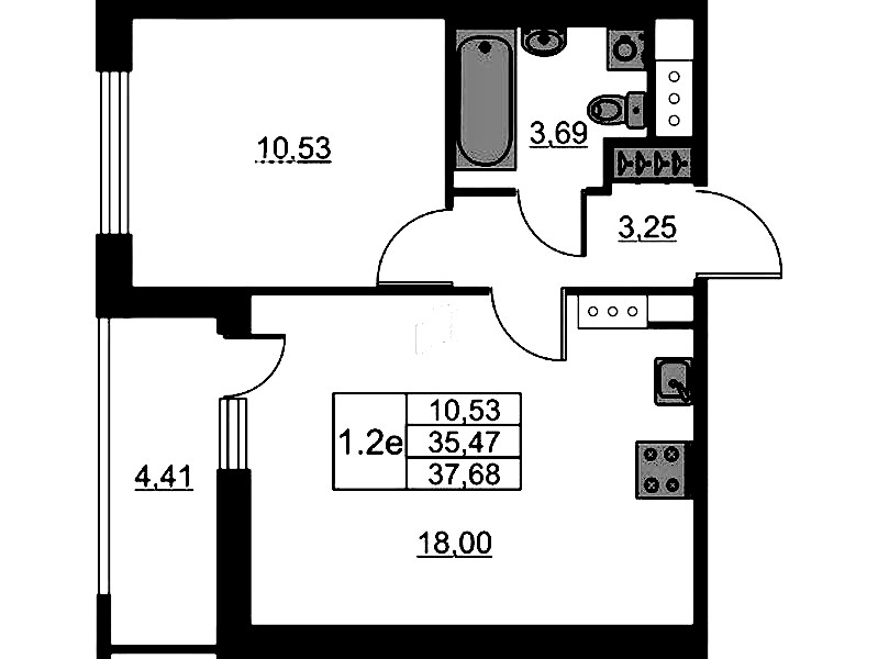 - Площадь35,47 м2