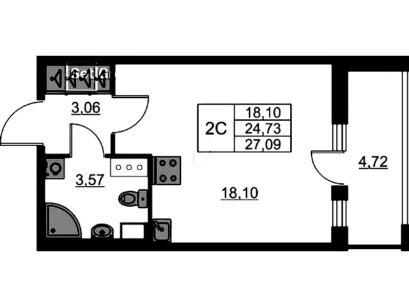 - Площадь24,73 м2