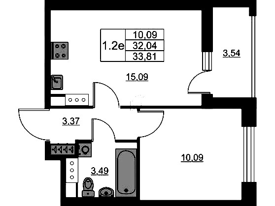 • Площадь кухни15,09 м2