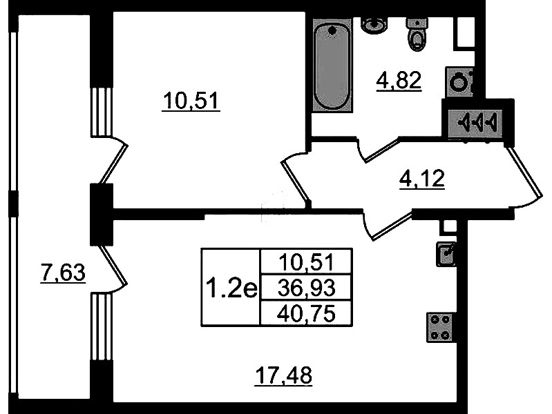 Однокомнатная квартира на 1-ом этаже 36,93 кв.м