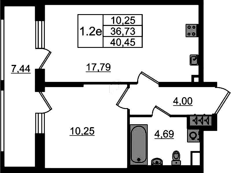 Однокомнатная квартира на 1-ом этаже 36,73 кв.м