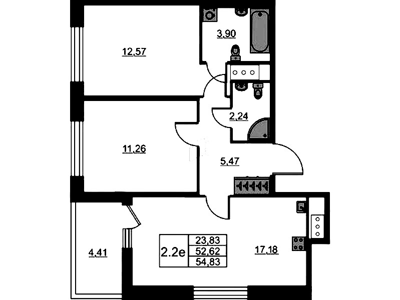 Двухкомнатная квартира на 2-ом этаже 52,62 кв.м