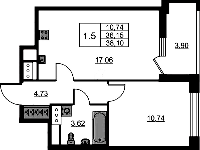 Однокомнатная квартира на 18-ом этаже 36,15 кв.м