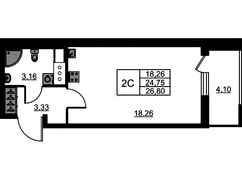 • Площадь24,75 м2