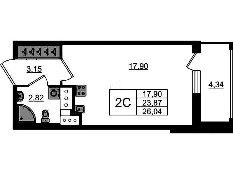 Квартира-студия на 23-ем этаже 23,87 кв.м